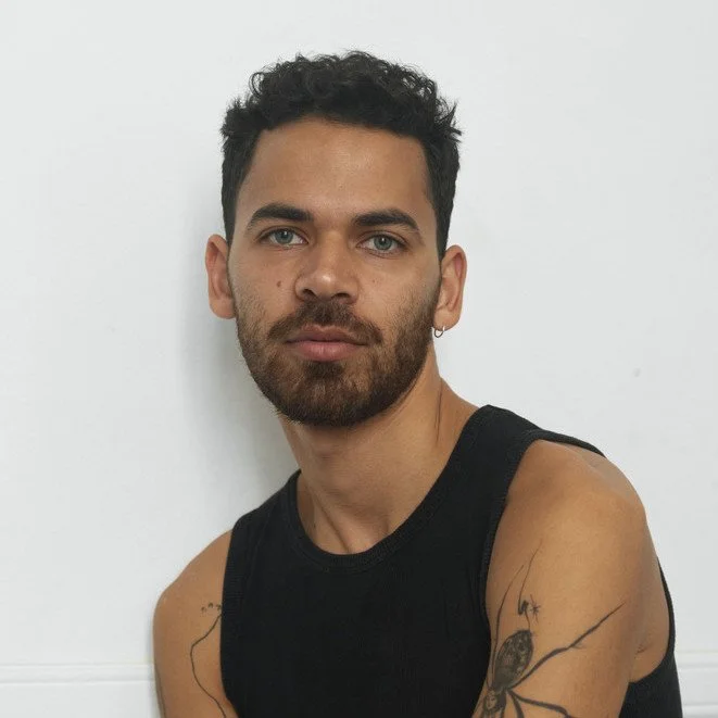 Giancarlo Montes Santangelo, native of the DC Metropolitan area, graduated from SUNY Purchase in 2018 with a BFA in photography. In 2019, Giancarlo exhibited his photographs alongside Paul Mpagi Sepuya and other collaborators as part of the Whitney Biennial. In 2020, he published his first monograph, "Improvising Sight Lines" with Monolith Editions – a book that weaves together images and writing and is held in the Metropolitan Museum of Art and the MoMA. Giancarlo was recently awarded the Aperture x Google Creator Labs Photo Fund and completed residencies with Tangent Projects and TILT Institute for the Contemporary Image. He photographs and collages in an effort to map out where he comes from and where he wants to go. Collaged photographs bring together the artist’s own body and staged scenes against archival images.